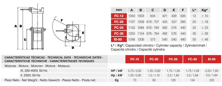 Capacidad del cilindro en Kg: ± 10 Kg.