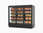 - Gama de congelado que se compone armario de cristal triple sobre una isla abierta para la exposición de productos congelado.