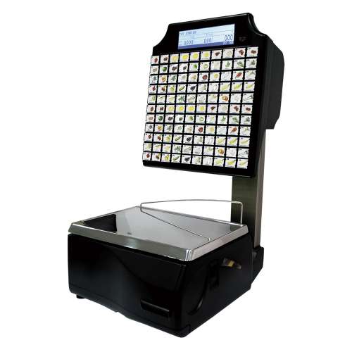 Balanza doble cuerpo autoservicio con etiquetadora y 110 teclas