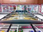 - Gama de congelado que se compone armario de cristal triple sobre una isla abierta para la exposición de productos congelado.
