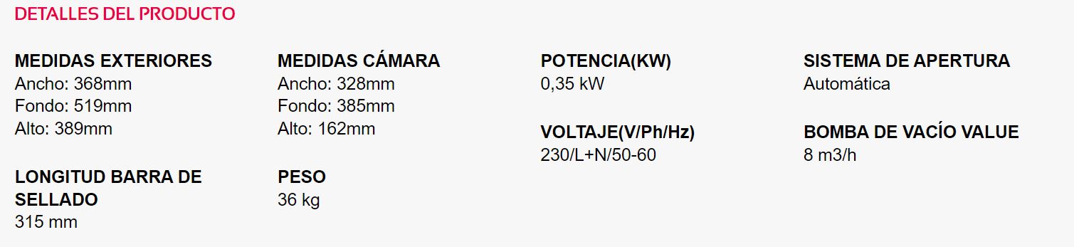 Práctico control con tres botones y pantalla LED que permite seleccionar de forma rápida e intuitiva los parámetros de envasado deseados. Para realizar envasados diarios sin complicaciones.