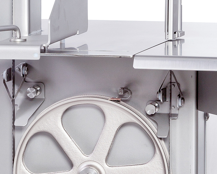 El modelo básico incluye tensor automático de la cinta, tope regulador de gruesos, apretador basculante con apoyo intermedio de la cinta graduable, cajetín de merma, mesa fija con rampa para descarga del producto y kit de ventilación forzada.