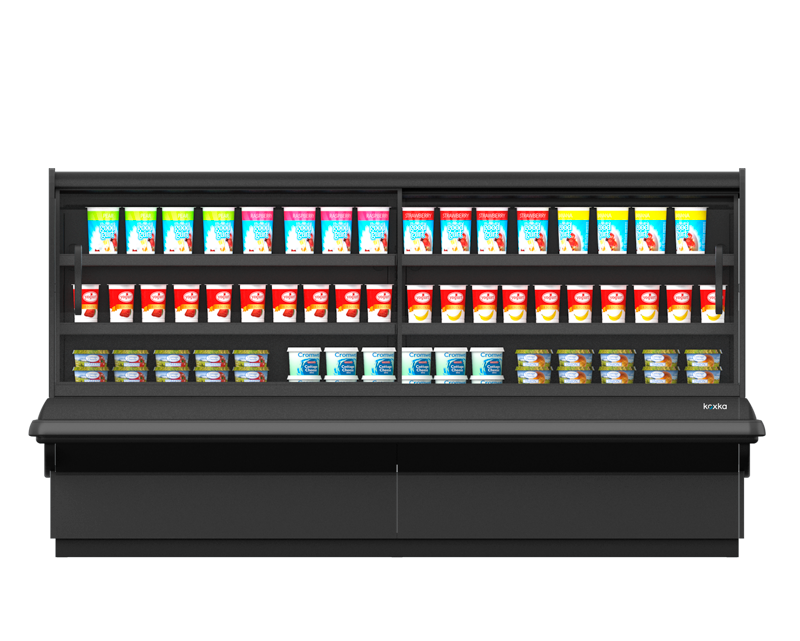 El uso de puertas correderas dobles garantiza el confort del pasillo y la perfecta conservación del producto expuesto en su interior.