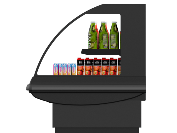 - Existen módulos, angulares exteriores e interiores que permiten un layout de tienda más dinámico y se pueden unir con las vitrinas de servicio tradicional.